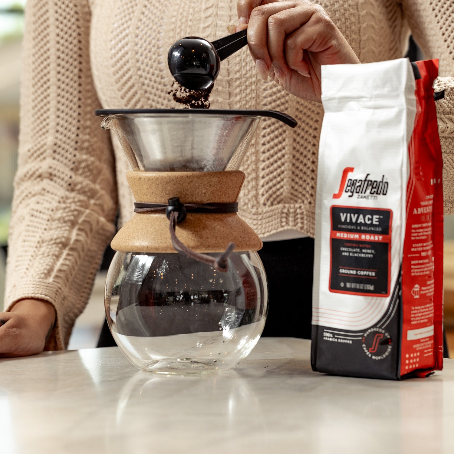 This brew method works well with any of our blends; for its liveliness and complexity one of our personal favorite is the medium roast Vivace